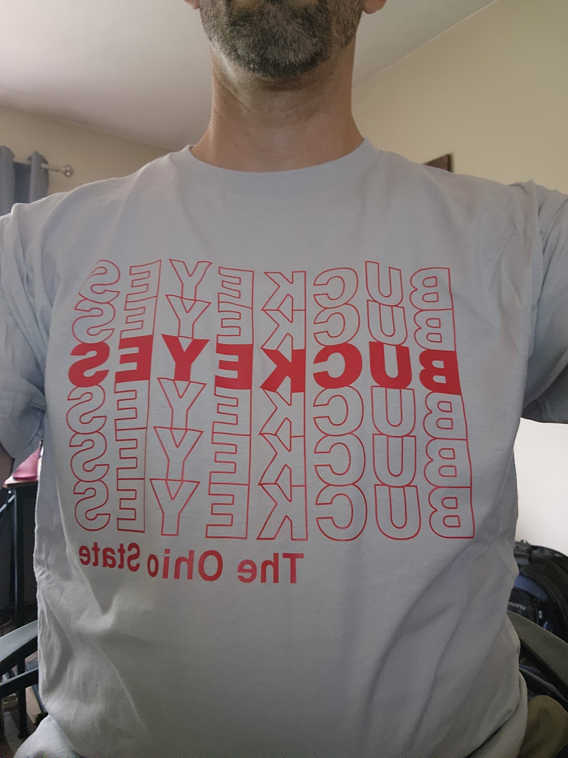 The OSU Thank You Bag Design on Ice Gray Shirt